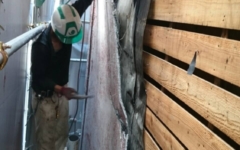 解体工事 台風接近中